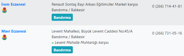 Ayvalık’ta 21 Ekim Pazartesi günü nöbetçi eczanelerin listesi şu şekilde;