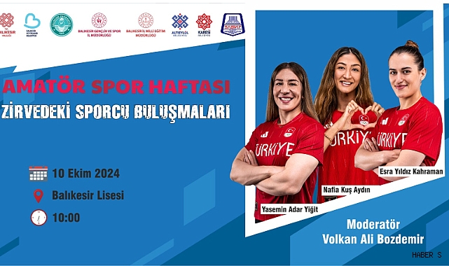 Balıkesir Gençlik ve Spor İl Müdürlüğü, Amatör Spor Haftası etkinlikleri çerçevesinde "Zirvedeki Sporcu Buluşmaları" düzenliyor. Etkinlikte, milli sporcular Yasemin Adar Yiğit, Nafia Kuş Aydın ve Esra Yıldız Kahraman, genç sporcularla bir araya gelerek deneyimlerini paylaşacaklar.