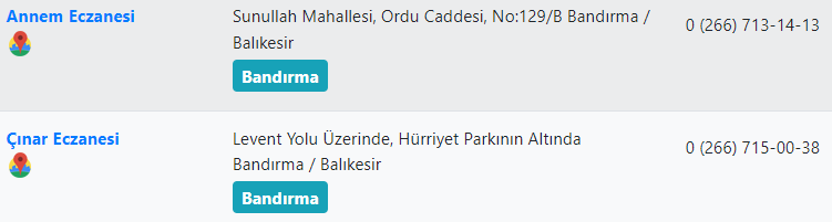 Bandırma'da 16 Eylül Pazartesi günü nöbetçi eczanelerin listesi şu şekilde;