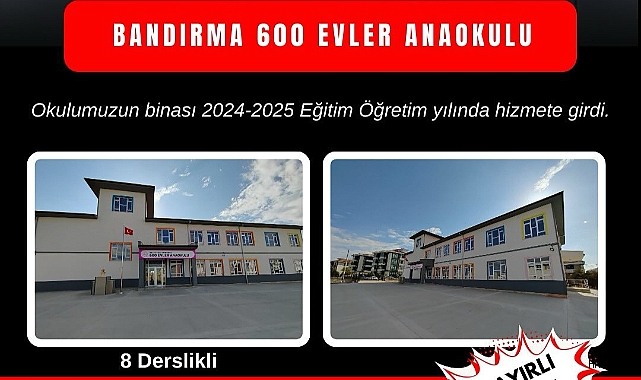Konuyla ilgili açıklama yapan Balıkesir İl Milli Eğitim Müdürü Murat Demir, "Eğitim ailemize yeni bir üye daha katmanın mutluluğunu yaşıyoruz. 600 Evler Anaokulu'nun yeni binası, modern eğitim anlayışıyla tasarlandı ve donatıldı. Bu yeni tesis, geleceğimizin teminatı olan çocuklarımızın gelişimine önemli katkılar sağlayacak." dedi.