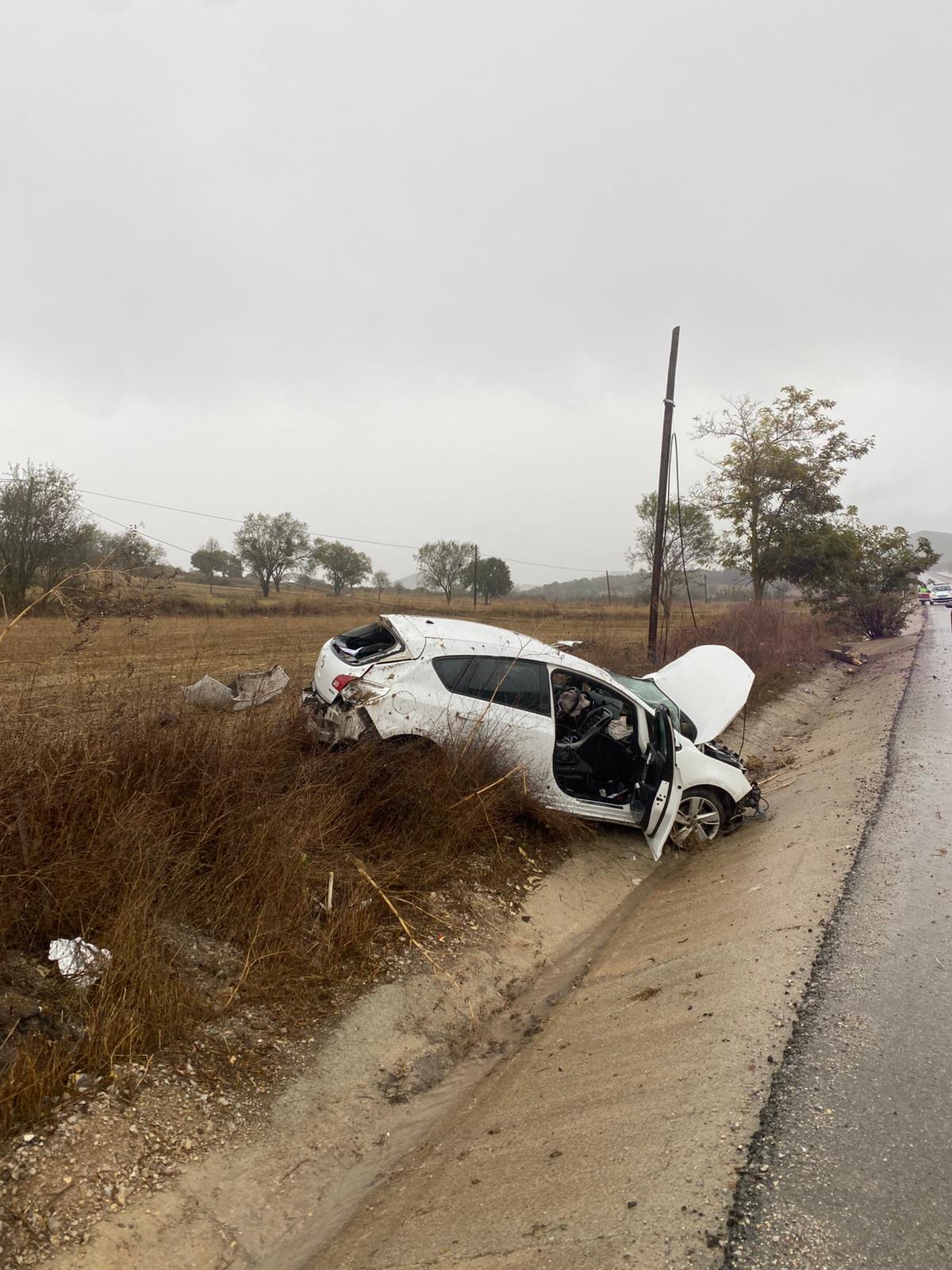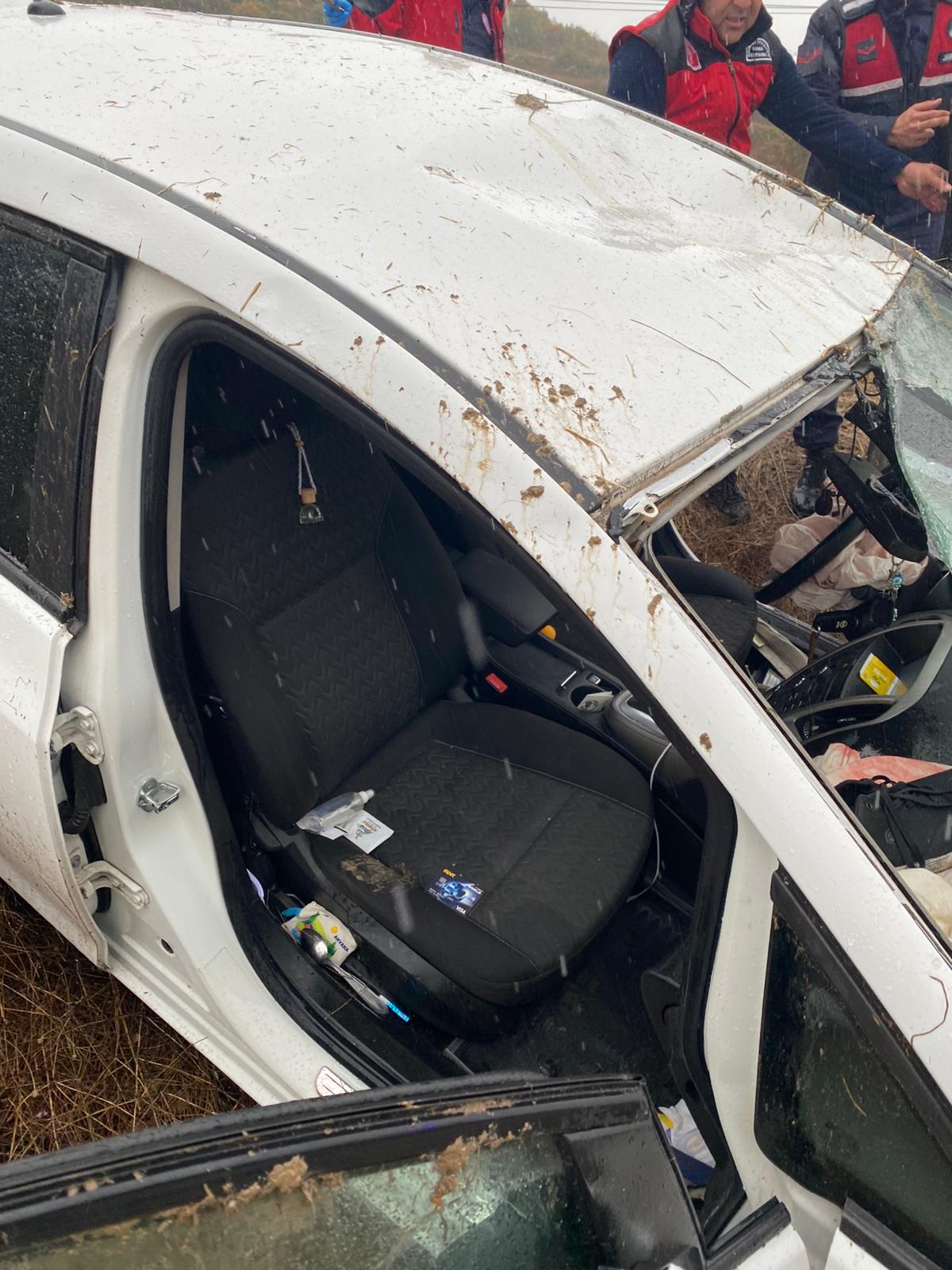 Balıkesir’in Bigadiç ilçesi Çömlekçi Mevkii yakınlarında yağışlı hava nedeniyle kayganlaşan yolda 10 AP 535 plakalı otomobil kontrolden çıkarak yol kenarındaki şarampole devrildi.