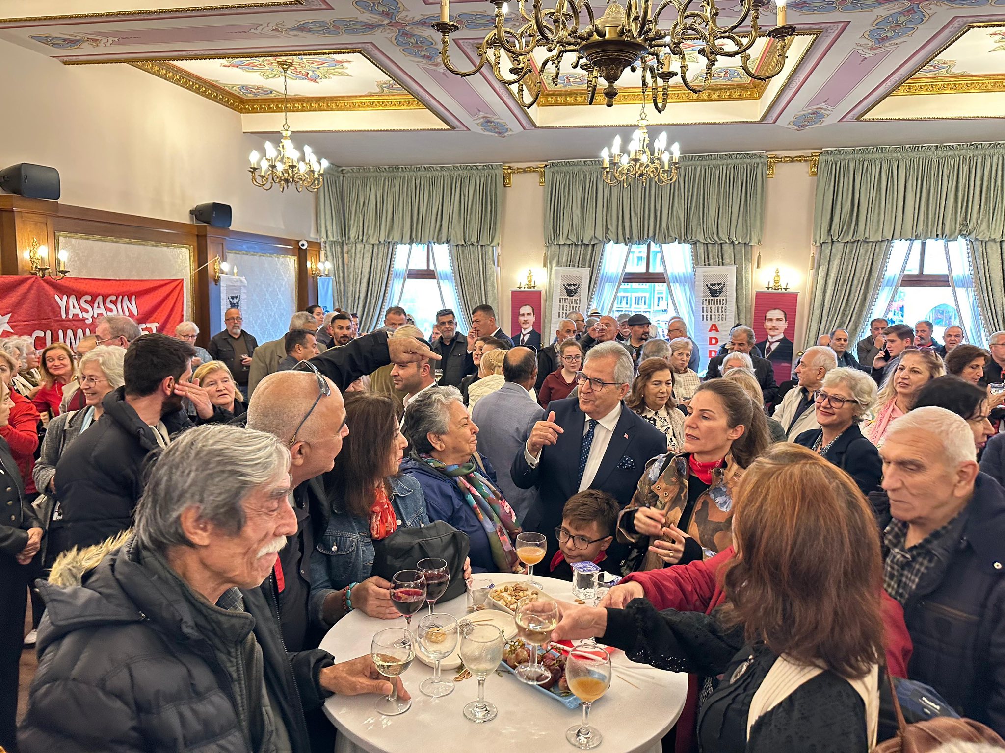 “Atatürkçü Düşünce Derneğimiz ile ortaklaşa düzenlediğimiz Cumhuriyet Kokteyli’nde, Cumhuriyetimizin 102. yılını büyük bir gurur ve coşkuyla kutladık. BALMEK Orkestrası’nın değerli performanslarıyla Cumhuriyetimizin aydınlık yolunu bir kez daha hissettik. Katılımlarıyla bu özel geceye anlam katan tüm hemşehrilerimize teşekkür ediyorum. Cumhuriyetimizin değerleriyle daima ileriye!”
