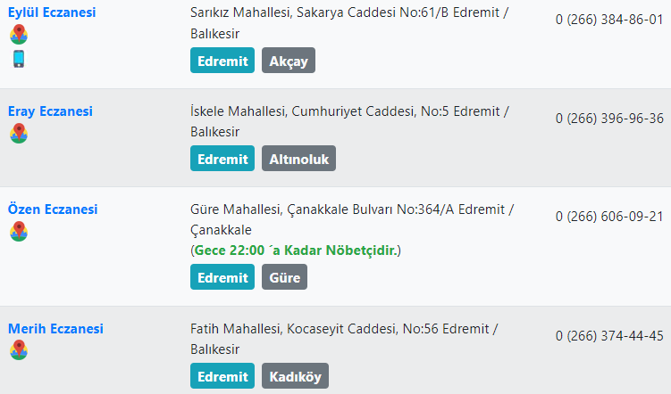 Edremit'te 15 Ekim Salı günü nöbetçi eczanelerin listesi şu şekilde;