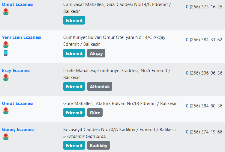 Edremit'te 19 Ekim Cumartesi günü nöbetçi eczanelerin listesi şu şekilde;