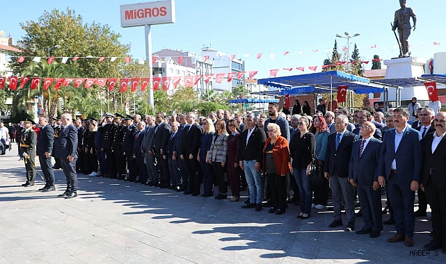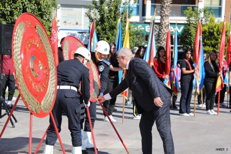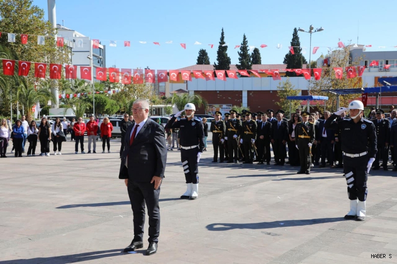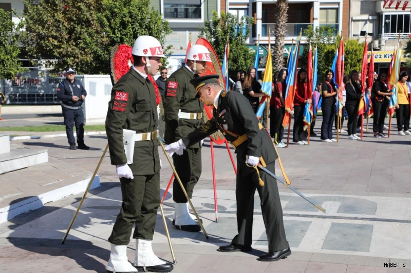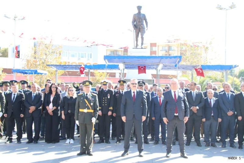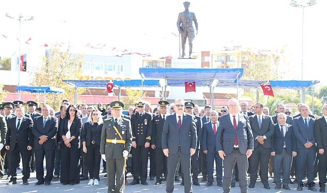 Atatürk Anıtı’na çelenklerin sunulması ve saygı duruşunun ardından İstiklal Marşı’nın okunmasıyla devam eden törende, Cumhuriyet’in kazanımlarına vurgu yapılarak birlik ve beraberlik mesajları verildi.