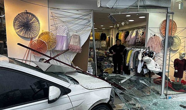 Güngören'de direksiyon hakimiyetini kaybeden otomobil sürücüsü, cadde üzerindeki giyim mağazasına daldı. Olayda yaralanan olmazken, kaza anı güvenlik kamerasına anbean yansıdı.