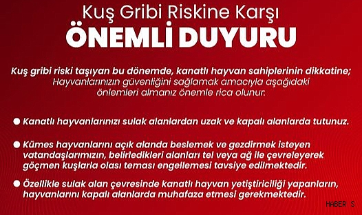 kuş gribi riskini en aza indirgemek için kanatlı hayvan sahiplerinden, özellikle sulak alanlarda yaşayan hayvanları kapalı alanlarda tutmalarını tavsiye etti. Ayrıca, açık alanda kümes hayvanlarını beslemek isteyen vatandaşların, belirledikleri alanları tel veya ağ ile çevrelemelerini önerdi. Bu şekilde, hayvanların göçmen kuşlarla temas etmesi engellenmiş olacak ve hastalık riski büyük ölçüde azalacaktır.