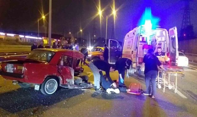 Sultanbeyli'de meydana gelen trafik kazası sonucu bir araç ikiye bölündü. Kazada araçtaki 2 kişi yaralandı.