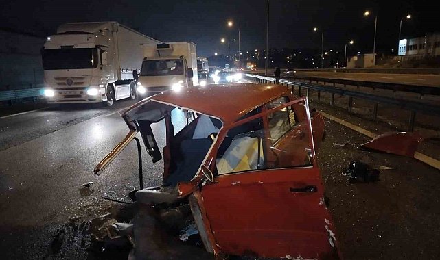 TEM Otoyolunda feci kaza: Araç ikiye bölündü